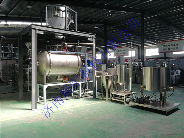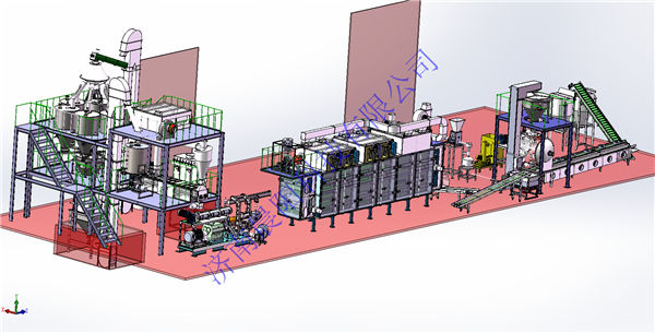 濟南晨陽科技有限公司于2019年5月份與韓國客戶簽訂時產1噸高肉狗糧生產線,該生產使用全自動(粉狀料)配料系統,高肉熟化均質機,雙螺桿膨化機,燃氣間接加熱式烘干機,全自動真空噴涂系統。其中先肉添加比例高達50%,填補了國內技術空白,該生產于8月底加工結束。