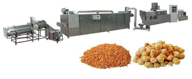 (3)拆絲:將脫水后的拉絲蛋白打散拆絲。把復(fù)水脫水后的拉絲蛋白置于快速打漿機(jī)中(鈍刀,轉(zhuǎn)速約500~1000rpm),打漿約2~3分鐘即可。也可用轉(zhuǎn)速達(dá)300rpm以上的擂潰機(jī)、攪拌機(jī)拆絲。或者將斬拌機(jī)反轉(zhuǎn)(刀背)運(yùn)行1分鐘左右(切刀速度約500~1000rpm)。 拉絲蛋白產(chǎn)品具有極佳的結(jié)構(gòu)和真實(shí)肉質(zhì)纖維的組織,非常適合用于各類高級素食仿肉食品的加工,如素火腿、素雞、素魚、素漢堡、素?zé)峁贰⑺夭棂Z、素牛排、素肉松等。產(chǎn)品本身亦具有良好的吸水性、保油性,經(jīng)過適當(dāng)?shù)募庸ぜ夹g(shù)后,是一種理想的高蛋白肉制品添加物,在肉制品應(yīng)用中,可達(dá)到增強(qiáng)肉感,降低成本,提高產(chǎn)品中的蛋白質(zhì)含量的目的。如應(yīng)用于肉糜腸類、西式火腿、肉丸類、重組排類(雞排、豬排等)、油炸雞塊、漢堡肉類餃子、包子、肉粽等速凍肉制品中;用于諸如仿肉牛肉干,重組牛肉粒,葷素肉松等休閑食品也是絕佳的選擇。拉絲蛋白產(chǎn)品復(fù)水即可調(diào)理制作菜肴或代替部分肉品使用,因此可直接供食堂、配餐公司、餐廳等選購。本品不僅操作方便,也倡導(dǎo)了健康營養(yǎng)的飲食新概念,同時可達(dá)到降低成本的效果(不到瘦肉成本的1/2),為一新潮流趨勢的食材選擇。
