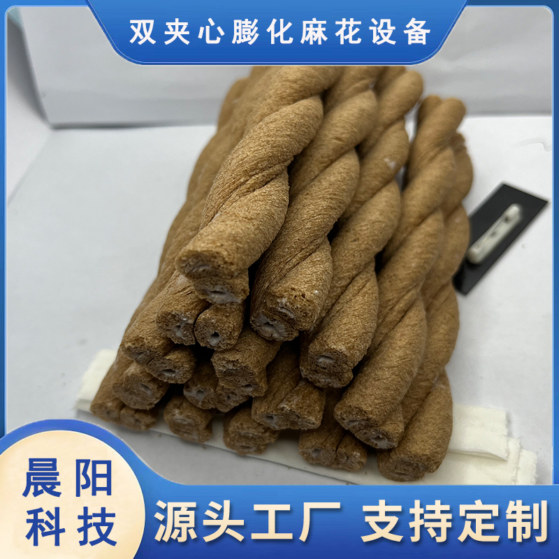膨化與夾餡:將混合后的物料送入膨化機,通過高溫高壓使其膨化,同時通過夾心模均勻注入餡料,形成膨化酥