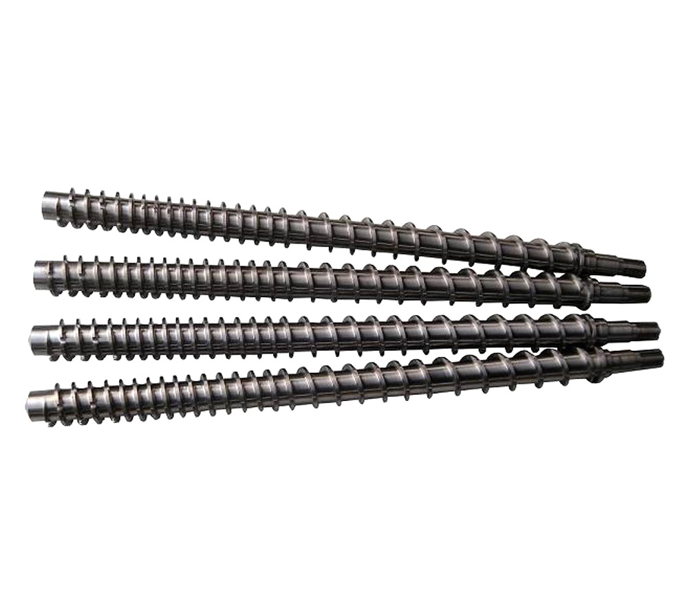 (2)擠出系統: 由螺桿,機筒,連接段組成; 螺桿為38crmoal材料,滲氮深度5mm,耐磨耐用,機筒為國標45號鋼,與螺桿配合間隙控制在0.5mm以內