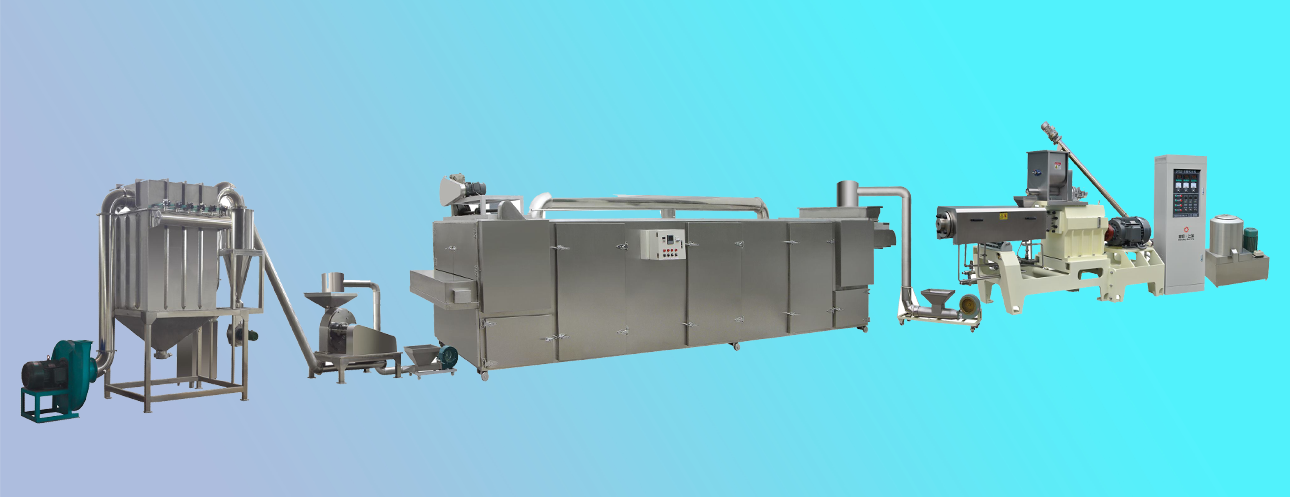 原料混合-擠壓膨化-冷卻-粉碎--包裝
