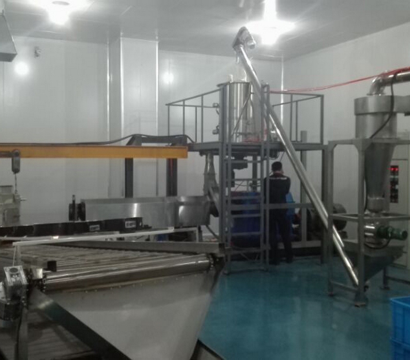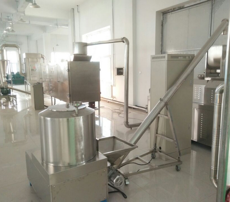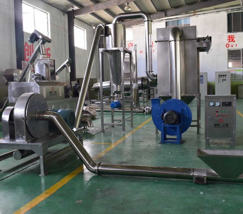 生產線構成:拌粉機→螺旋提料機→膨化主機→冷卻輸送機→除塵粉碎機