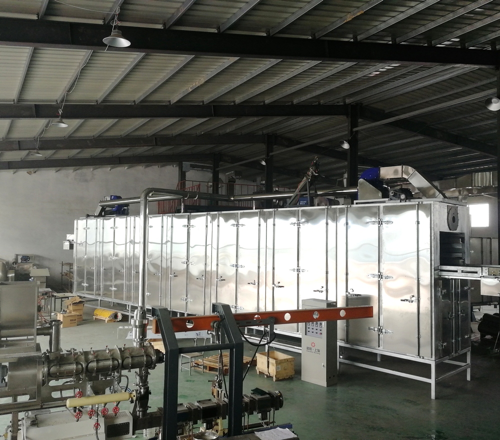 濟南晨陽公司的燃氣帶式干燥機是一種的熱風循環干燥設備,采用的熱風十字穿流烘干技術,廣泛用于擠壓膨化的各類寵物食品、水產飼料、組織蛋白、拉絲蛋白、休閑食品、雜糧、蔬菜、醫藥及化工等行業的顆粒和片狀物料的干燥處理。其的烘干結構決定了在寵物食品和魚飼料行業中有其它類型干燥機不可比擬的優勢,主要體現在物料干燥后的水分不均勻度值小、綜合能耗值低、烘干速度快、產量高等優點,實現了低溫烘干限度破壞飼料營養成分含量和破損率低的工況。