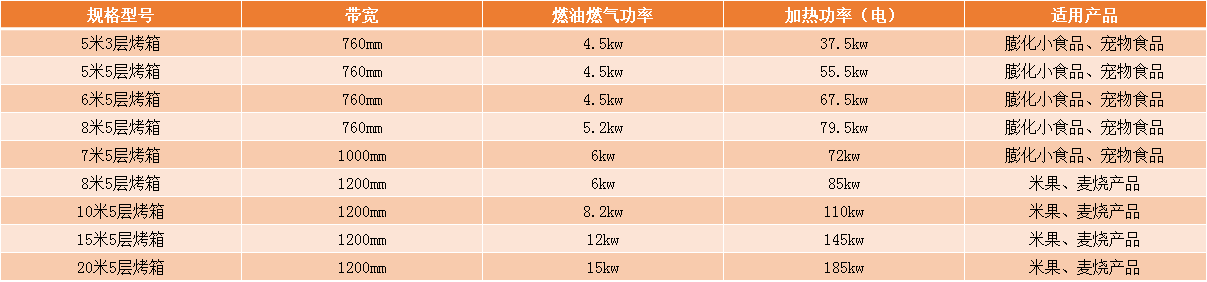 產(chǎn)品:頂部加熱使用在烘烤膨化食品物料表面含油量較高,滴油的產(chǎn)品,頂部加熱更安全,易清潔;外部加熱烤箱烘干產(chǎn)品多樣性,使用能耗更低。