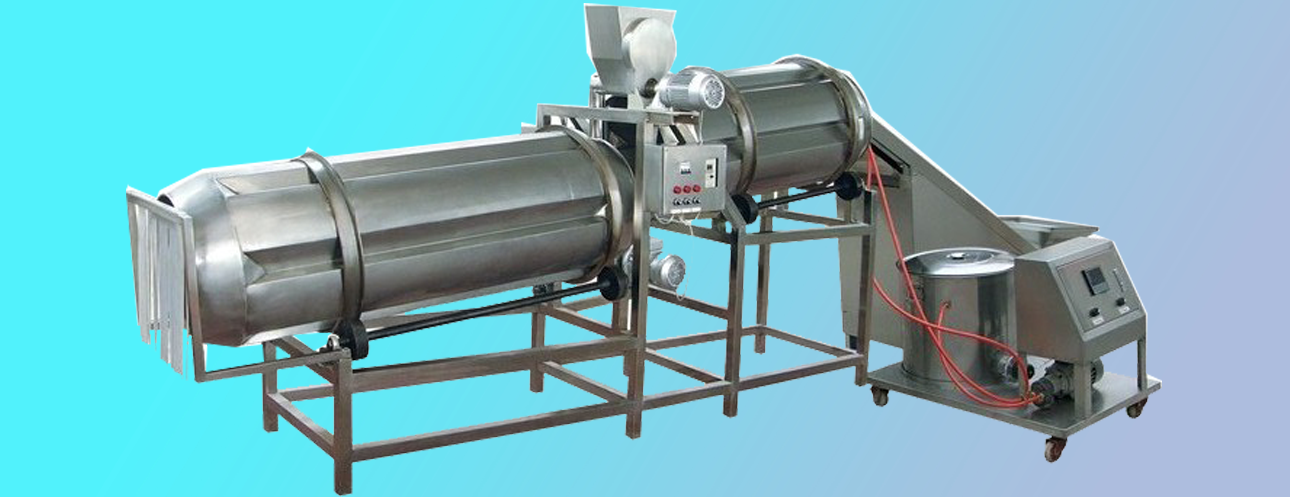 設(shè)備組成:中提升機(jī)、雙滾筒調(diào)味機(jī)、噴油機(jī)