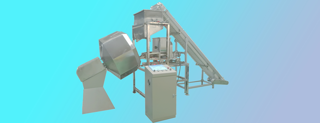 單筒自動八角調味設備主要用于休閑膨化食品、寵物食品的表面噴油與調味,具有調味均勻,可連續作業等特點。滾筒前端先噴油,物料表面有粘性后 在滾筒中端再撒入調味粉,調味粉可以更好的黏附在產品表面。